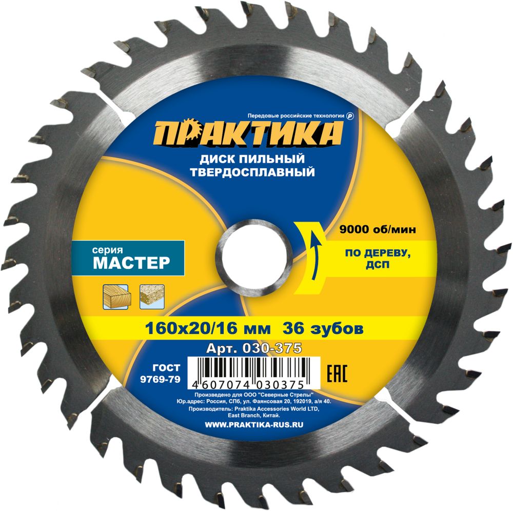 Диск пильный твердосплавный по дереву, ДСП ПРАКТИКА 160 х 20\16 мм, 36 зубьев (030-375) - цена, фото, технические характеристики