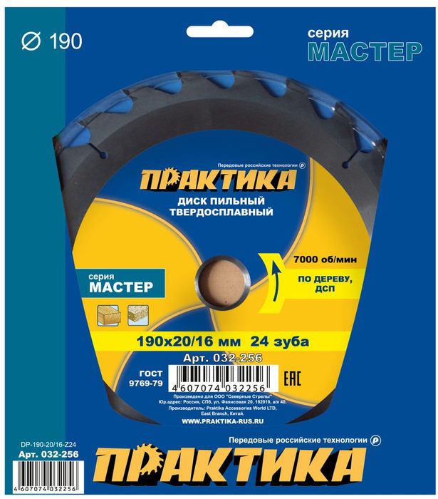 Диск пильный твердосплавный по дереву, ДСП ПРАКТИКА 190 х 20\16 мм, 24 зуба (032-256) - цена, фото, технические характеристики