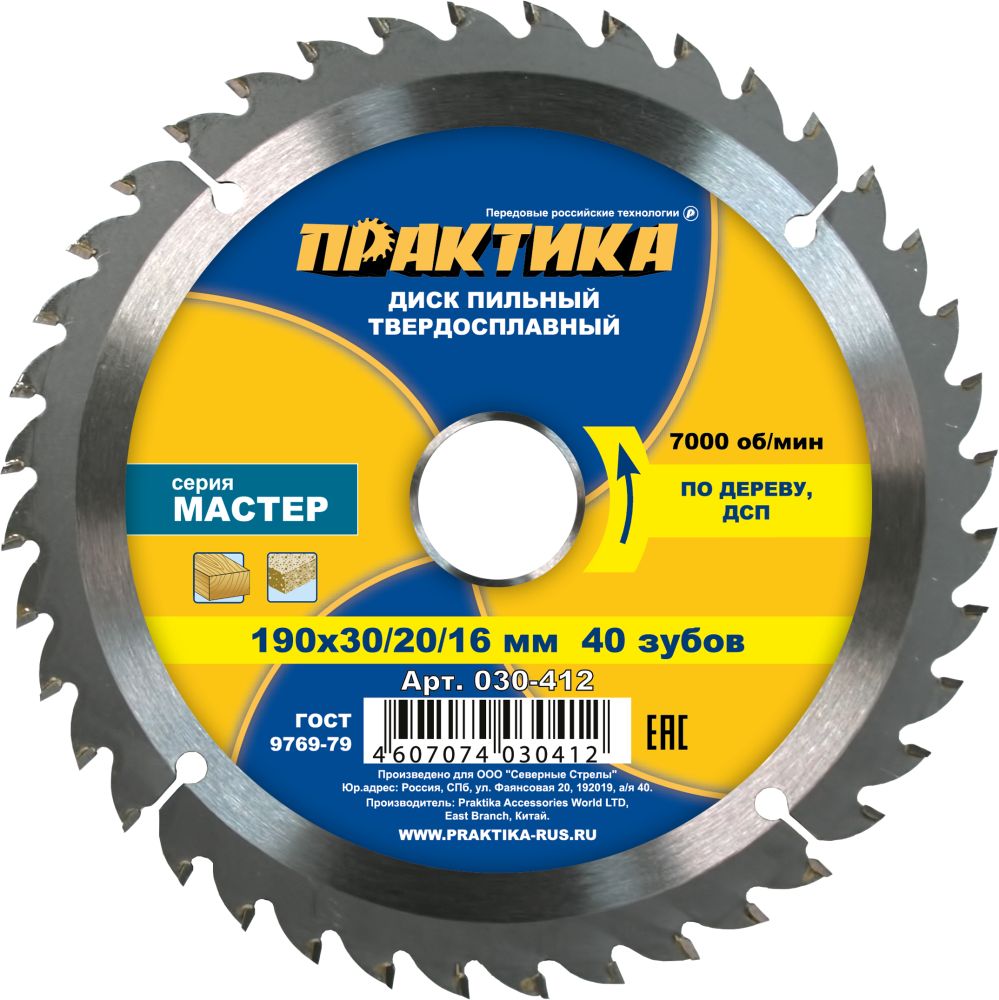 Диск пильный твердосплавный по дереву, ДСП ПРАКТИКА 190 х 30\20\16 мм, 40 зубьев (030-412) - цена, фото, технические характеристики