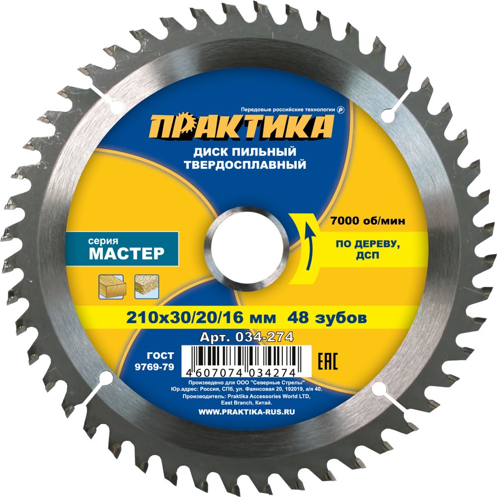 Диск пильный твердосплавный по дереву, ДСП ПРАКТИКА 210 х 30\20\16 мм, 48 зубьев (034-274) - цена, фото, технические характеристики