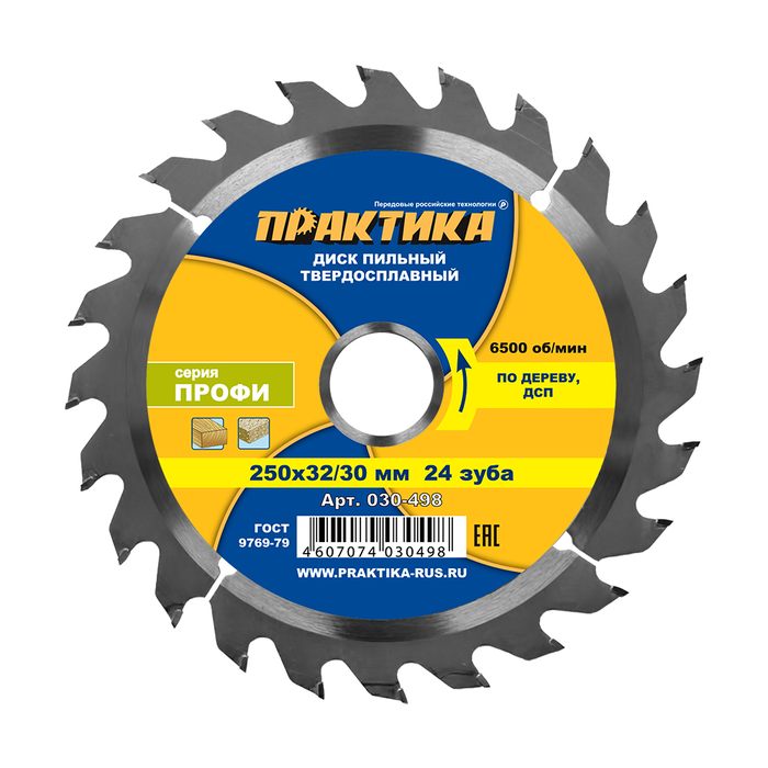 Диск пильный твердосплавный по дереву, ДСП ПРАКТИКА 250 х 32\30 мм, 24 зуба (030-498) - цена, фото, технические характеристики