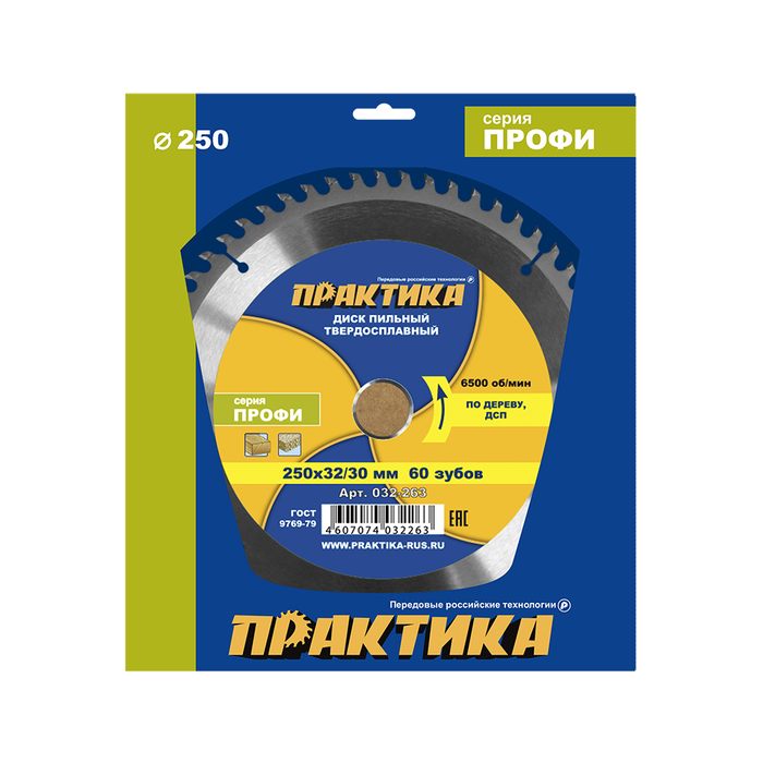 Диск пильный твердосплавный по дереву, ДСП ПРАКТИКА 250 х 32\30 мм, 60 зубьев (032-263) - цена, фото, технические характеристики