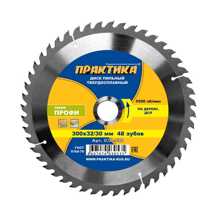 Диск пильный твердосплавный по дереву, ДСП ПРАКТИКА 300 х 32\30 мм, 48 зубьев (030-535) - цена, фото, технические характеристики