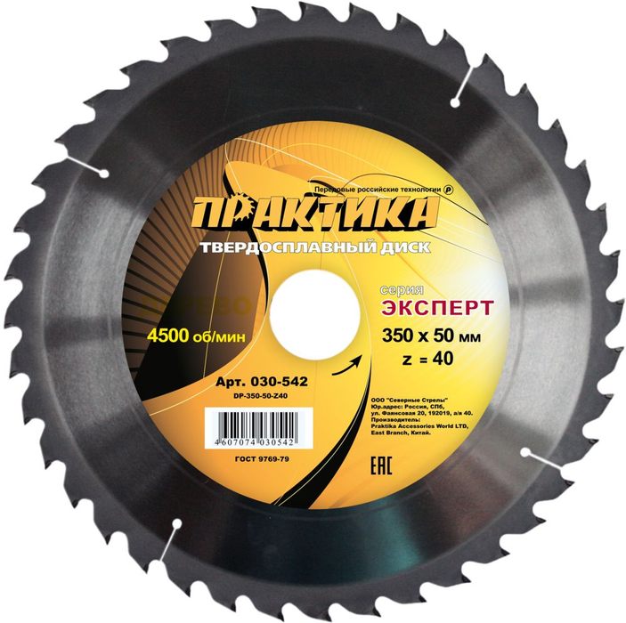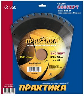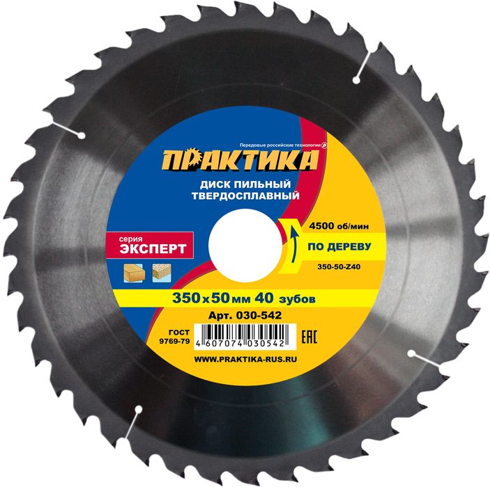 Диск пильный твердосплавный по дереву, ДСП ПРАКТИКА 350 х 50 мм, 40 зубьев (030-542) - цена, фото, технические характеристики