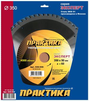 Диск пильный твердосплавный по дереву, ДСП ПРАКТИКА 350 х 50 мм, 60 зубьев (030-559) (030-559)