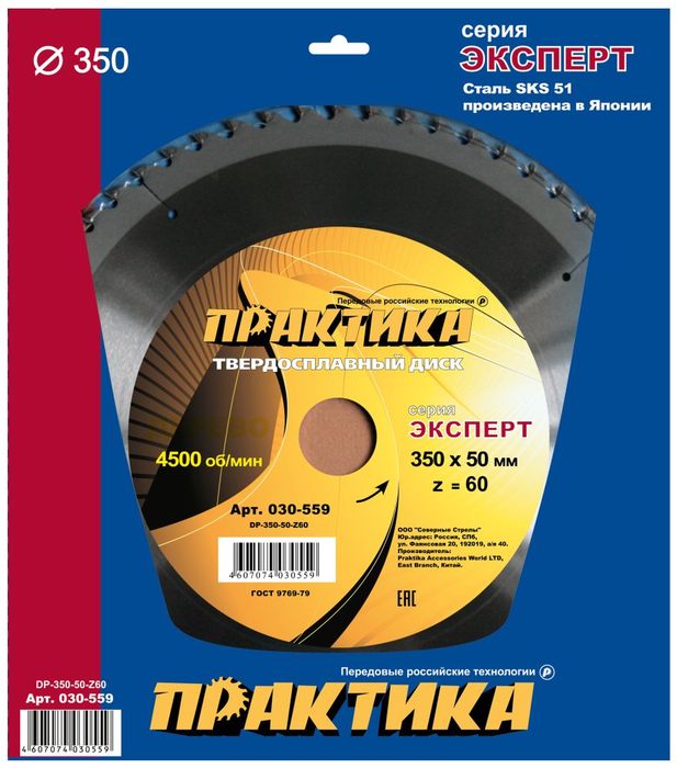 Диск пильный твердосплавный по дереву, ДСП ПРАКТИКА 350 х 50 мм, 60 зубьев (030-559) - цена, фото, технические характеристики