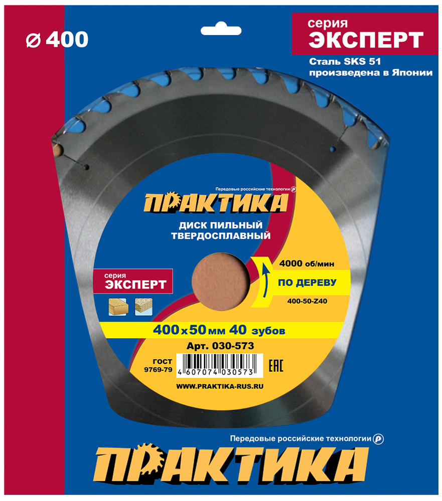Диск пильный твердосплавный по дереву, ДСП ПРАКТИКА 400 х 50 мм, 40 зубьев (030-573) - цена, фото, технические характеристики