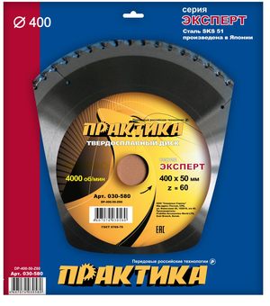 Диск пильный твердосплавный по дереву, ДСП ПРАКТИКА 400 х 50 мм, 60 зубьев (030-580) - цена, фото, технические характеристики