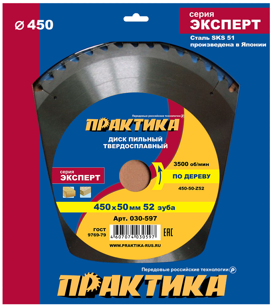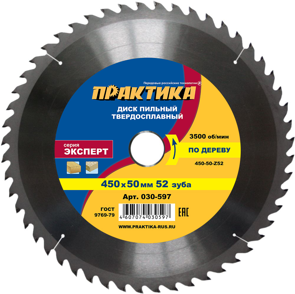 Диск пильный твердосплавный по дереву, ДСП ПРАКТИКА 450 х 50 мм, 52 зуба (030-597) - цена, фото, технические характеристики