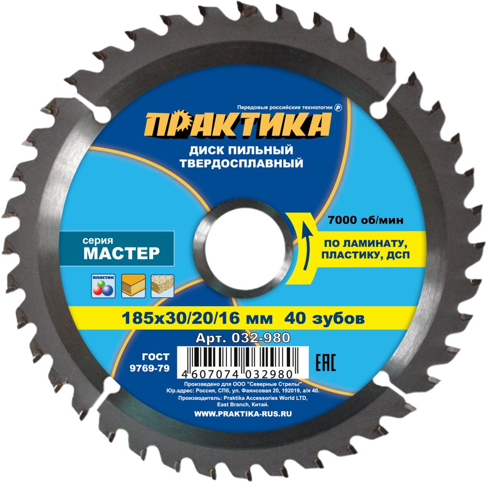 Диск пильный твердосплавный по ламинату ПРАКТИКА 185 х 30\20\16 мм, 40 зубьев (032-980) - цена, фото, технические характеристики