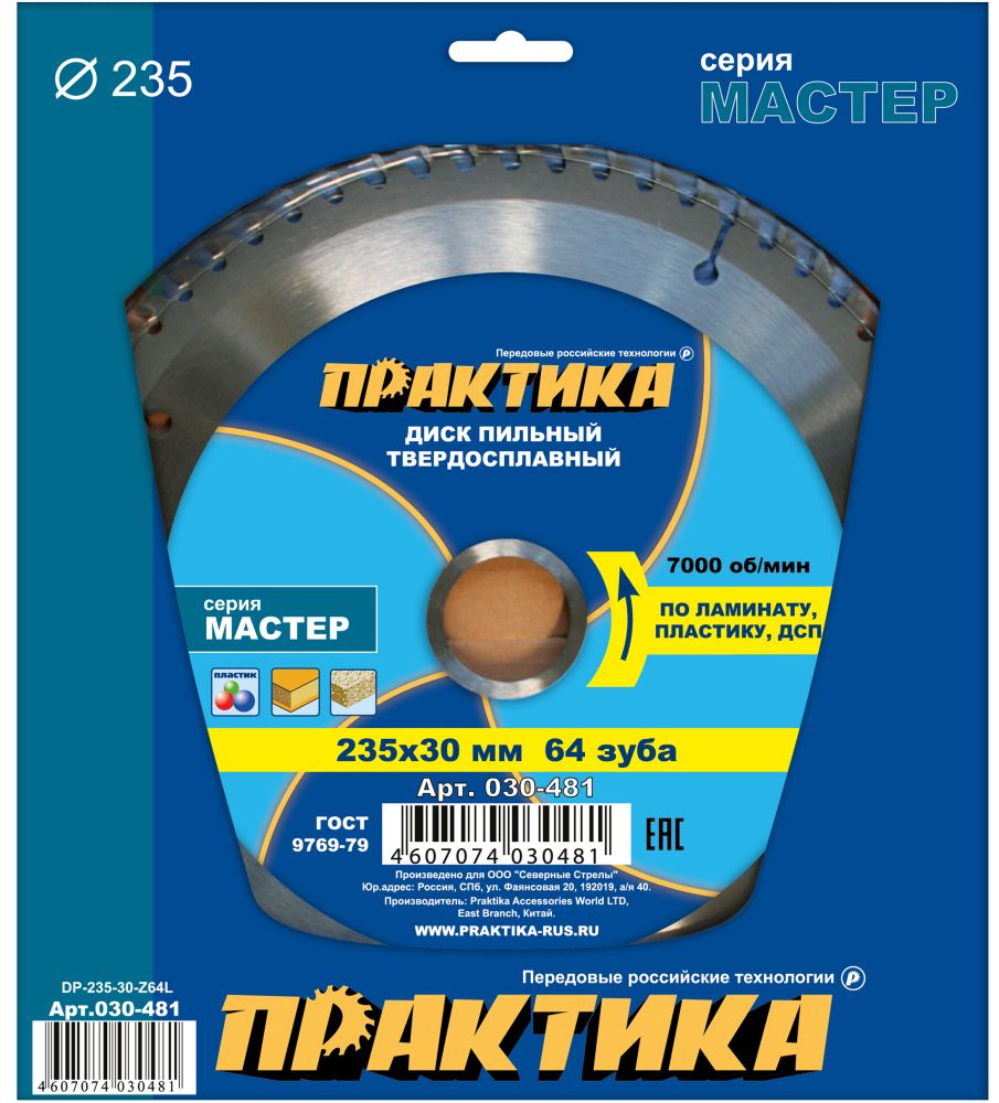 Диск пильный твердосплавный по ламинату ПРАКТИКА 235 х 30 мм, 64 зуба (030-481) (030-481)