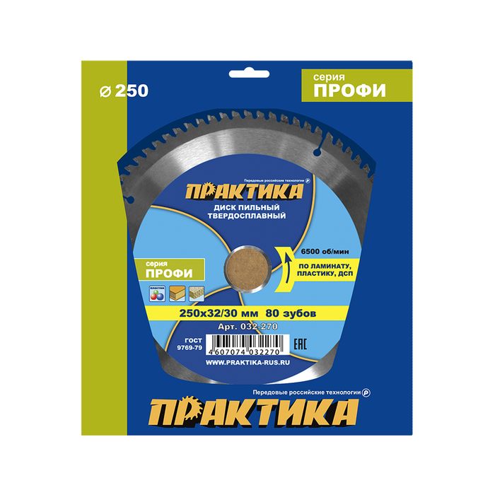 Диск пильный твердосплавный по ламинату ПРАКТИКА 250 х 32\30 мм, 80 зубьев (032-270) - цена, фото, технические характеристики