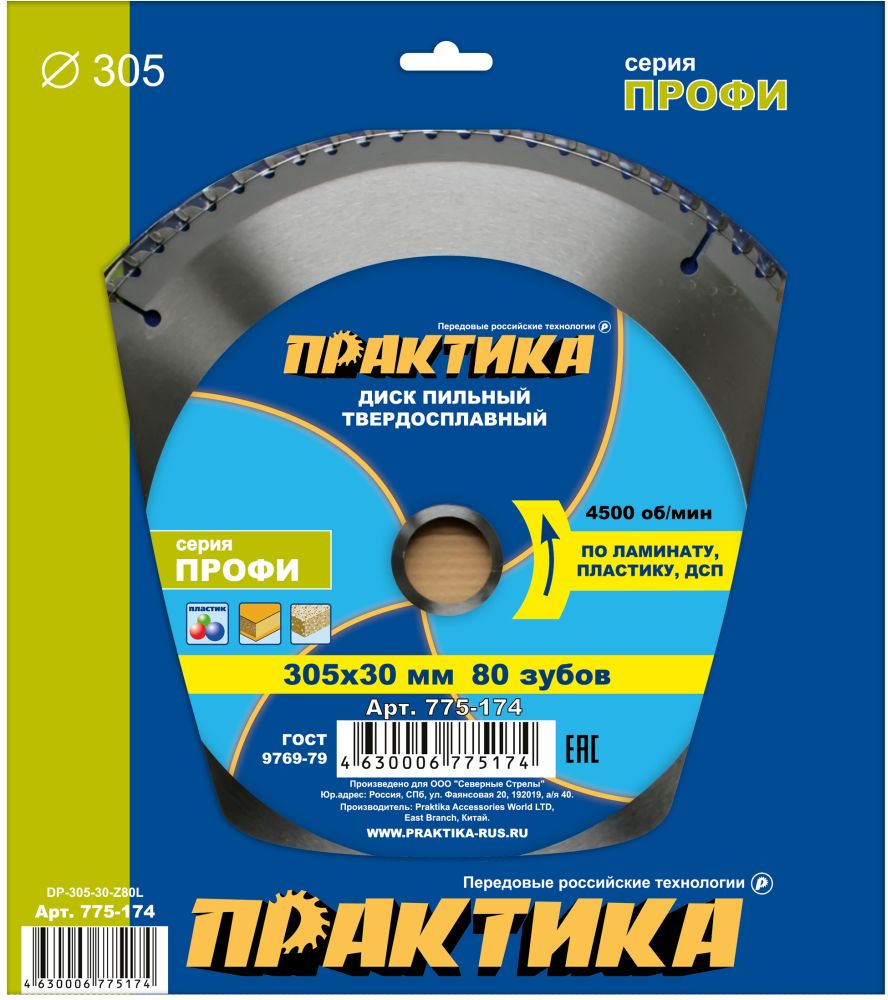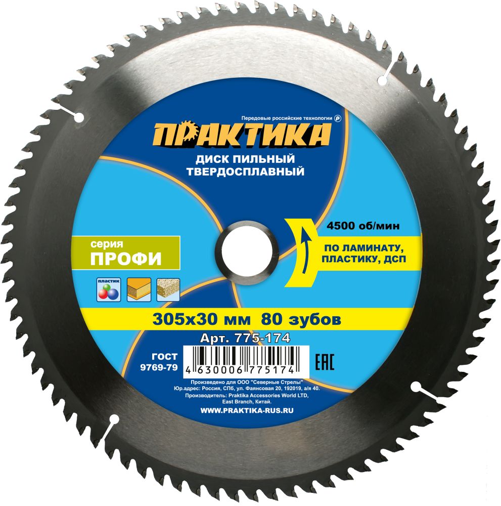 Диск пильный твердосплавный по ламинату ПРАКТИКА 305 х 30 мм, 80 зубьев (775-174) - цена, фото, технические характеристики