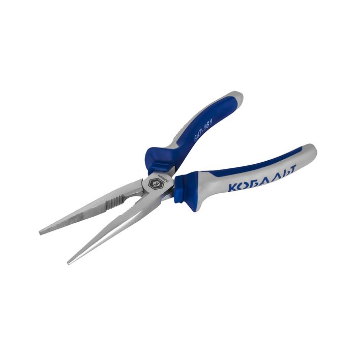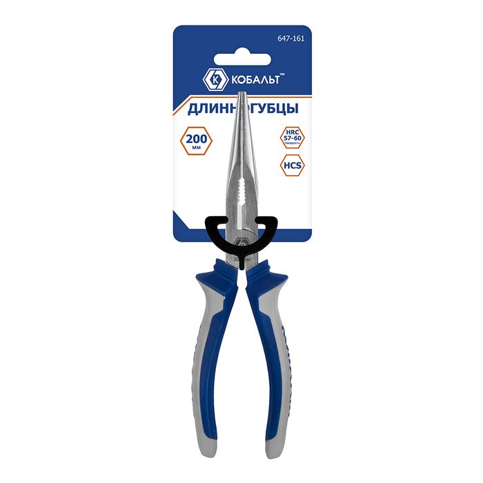 Длинногубцы КОБАЛЬТ 200 мм, с кусачками для проволоки, 2-х компонентные рукоятки, HCS, подвес (647-161)