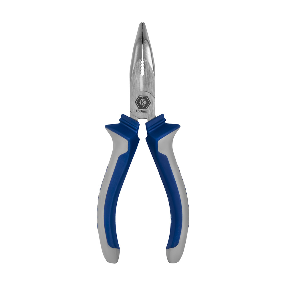 Длинногубцы КОБАЛЬТ изогнутые, 160 мм, с кусачками для проволоки, 2-х компонентные рукоятки, HCS, подвес (647-178)
