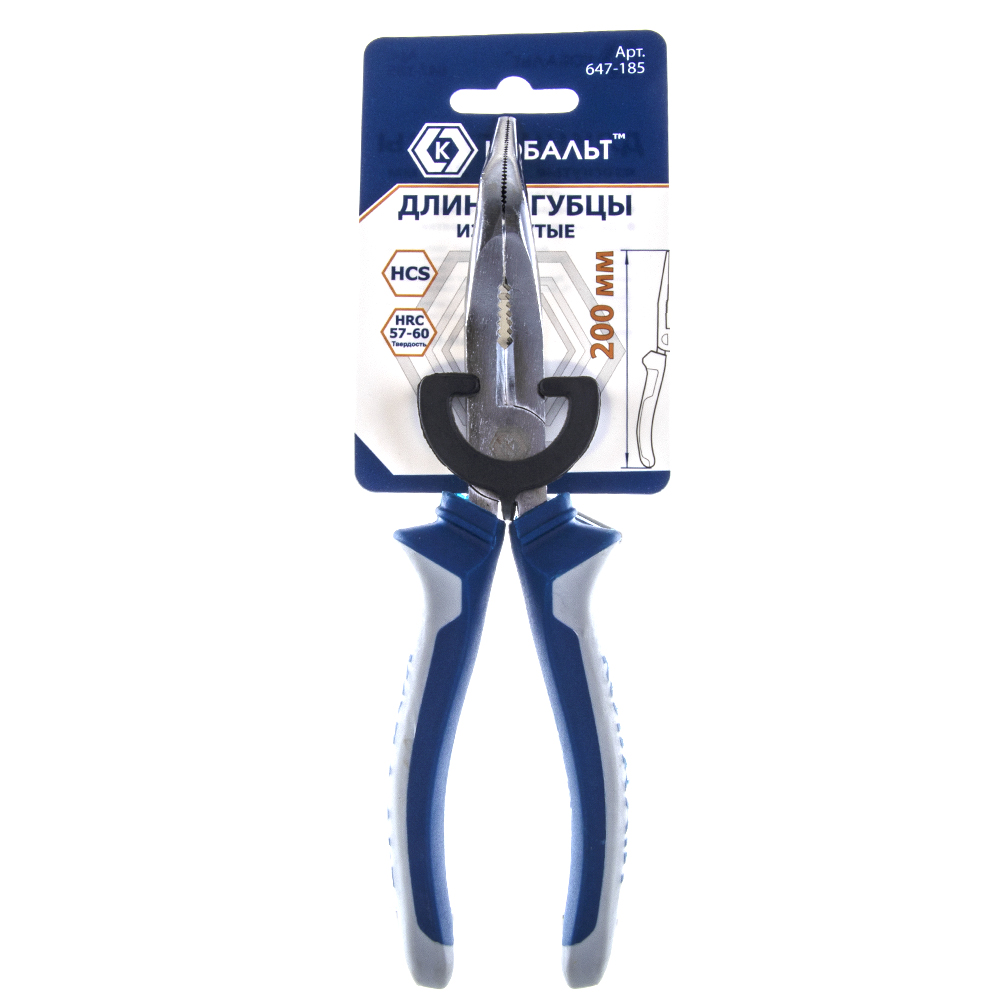 Длинногубцы КОБАЛЬТ изогнутые, 200 мм, с кусачками для проволоки, 2-х компонентные рукоятки, HCS, подвес (647-185) - цена, фото, технические характеристики