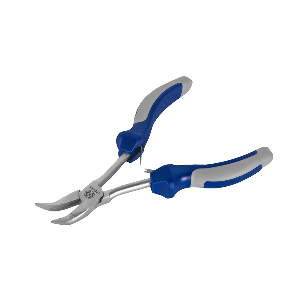 Длинногубцы КОБАЛЬТ изогнутые мини удлиненные, 165 мм, 2-х компонентные рукоятки, HCS, подвес (244-162)