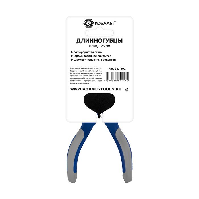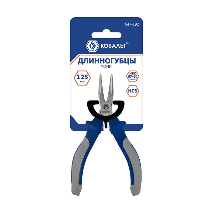 Длинногубцы КОБАЛЬТ мини, 125 мм, с кусачками для проволоки, 2-х компонентные рукоятки, HCS, подвес (647-192) - цена, фото, технические характеристики