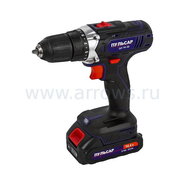 Дрель аккумуляторная безударная ПУЛЬСАР ДА 14-30 (14,4В, 30Hm, Li-on, 2,0Ah, 2акк,кейс) - цена, фото, технические характеристики