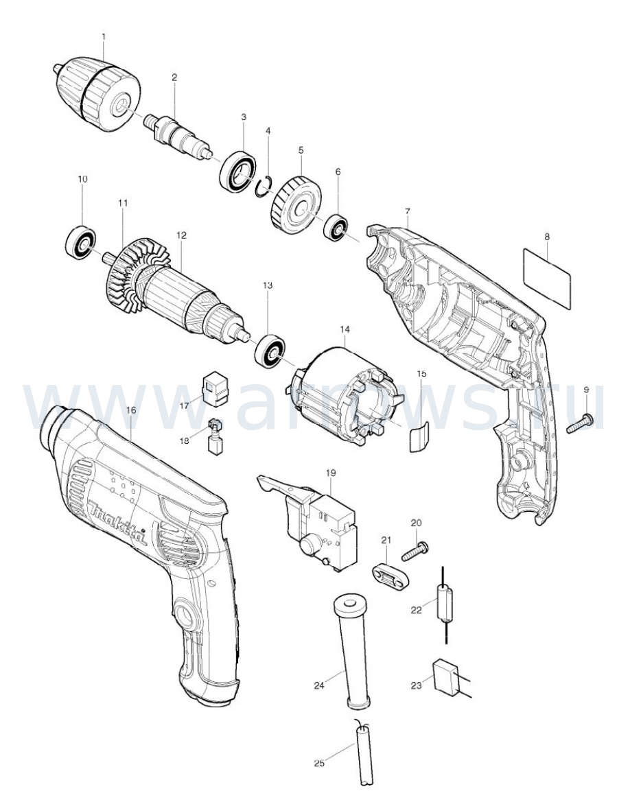 Дрель сетевая безударная MAKITA 6413 (450Вт, 0-3000 об.мин, БЗП) - цена, фото, технические характеристики
