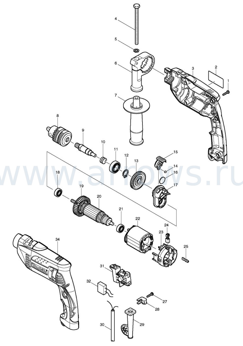Дрель сетевая ударная MAKITA HP1640K (680 Вт, патрон 13мм, 2кг, кейс) - цена, фото, технические характеристики