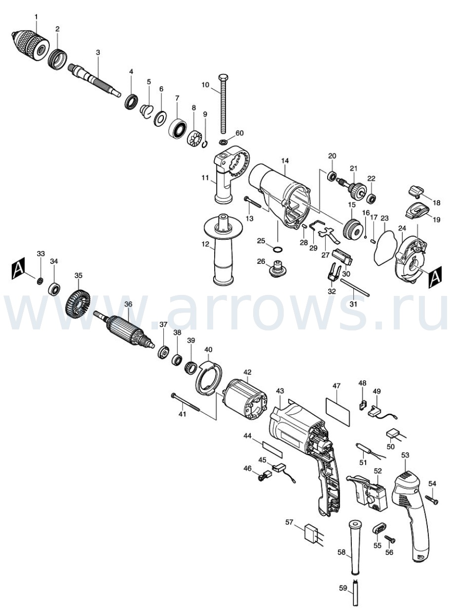 Дрель сетевая ударная MAKITA HP2051 (720Вт, 0-1200/0-2900 об. мин, быстрозажимной патрон, кейс) - цена, фото, технические характеристики