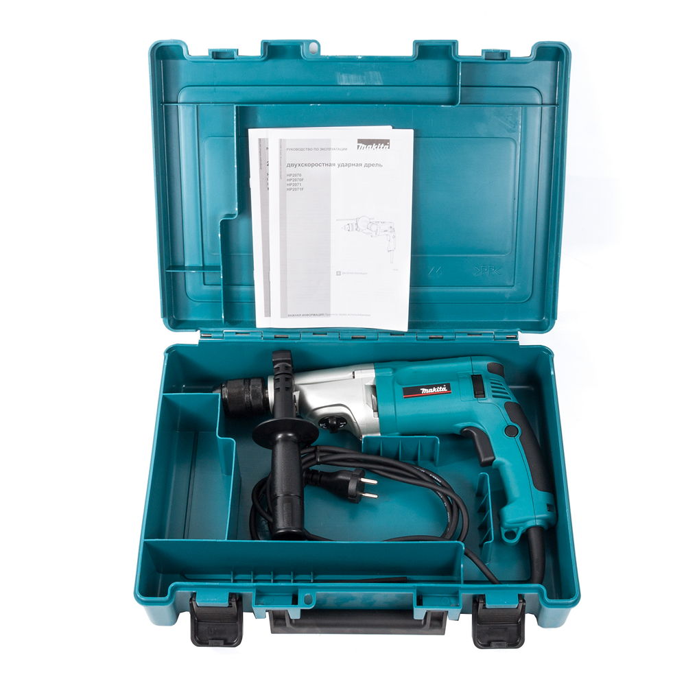 Дрель сетевая ударная MAKITA HP2071F (1010 Вт, 0-1200/0-2900 об.мин, быстрозажимной патрон, подсветка, кейс)