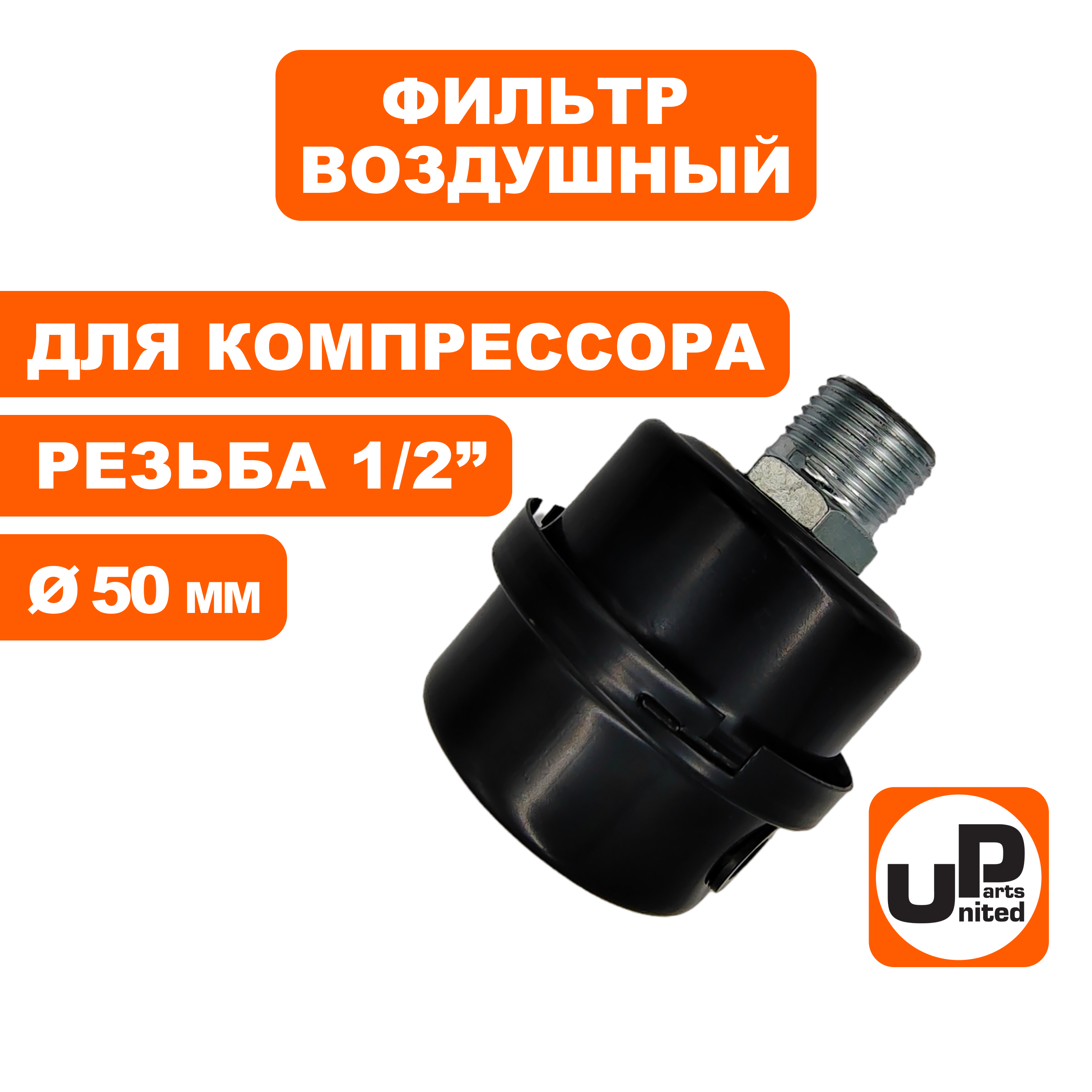 Фильтр воздушный UNITED PARTS для компрессора , резьба 1/2", диаметр 50мм (металлический) - цена, фото, технические характеристики