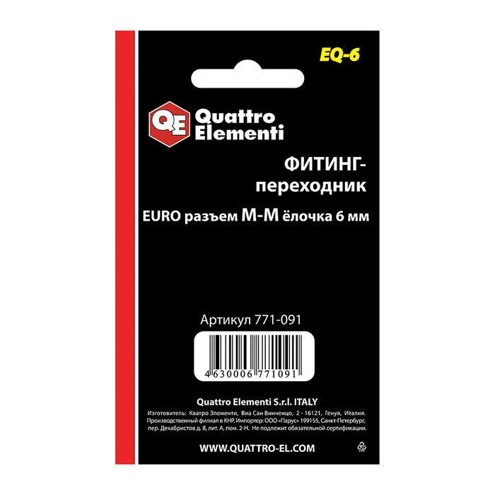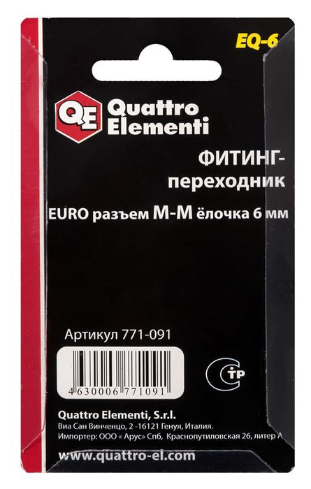Фитинг-переходник QUATTRO ELEMENTI EQ-6, соединение папа EURO - папа елочка 6 мм, ( 2 шт ) (771-091) - цена, фото, технические характеристики