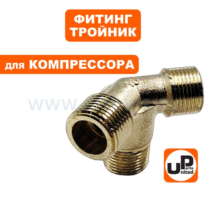 Фитинг-тройник UNITED PARTS для компрессора угловой, резьба внешняя  3/8"×3/8"×1/2"