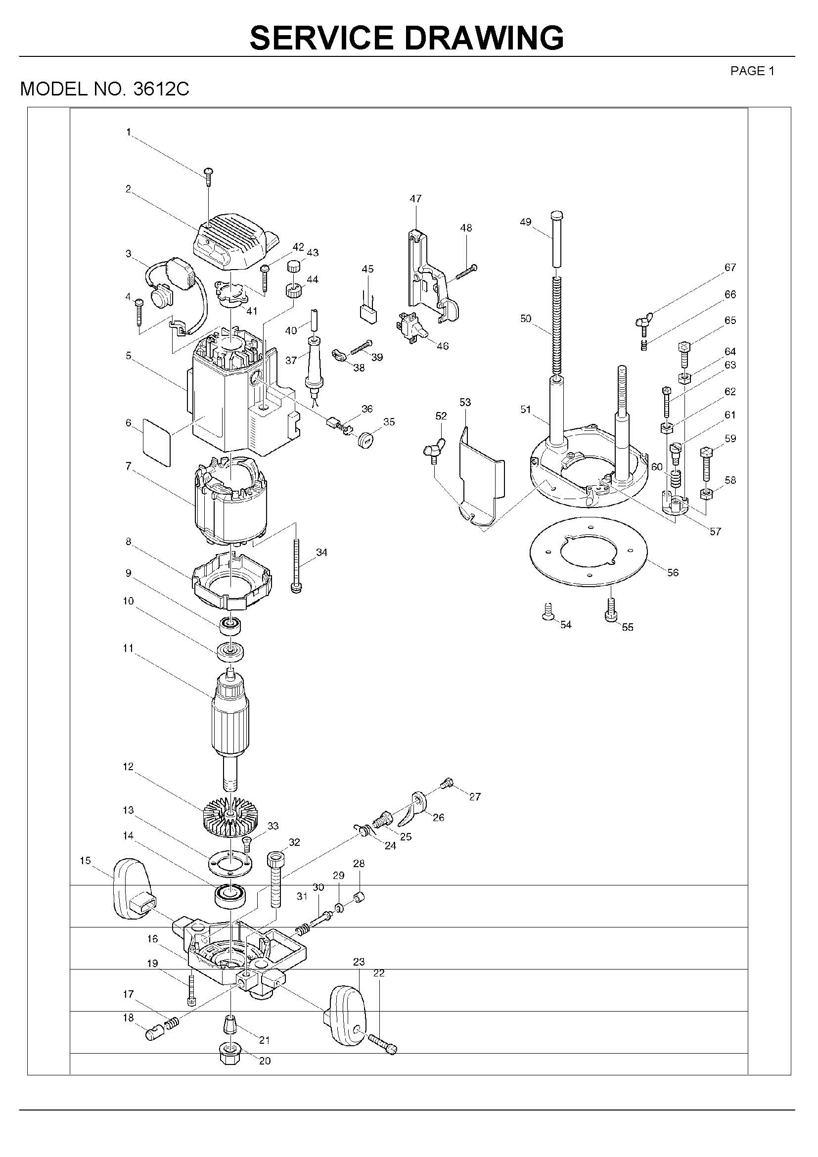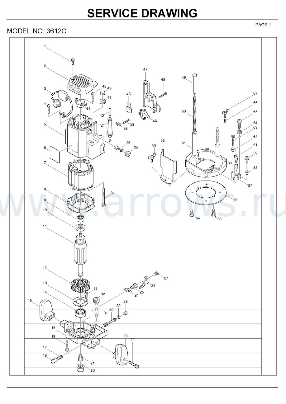 Фрезерная машина MAKITA 3612C (1650 Вт, цанга 12мм, 9000-23000об/м, раб.ход 60мм, 6кг, короб (3612C) - цена, фото, технические характеристики
