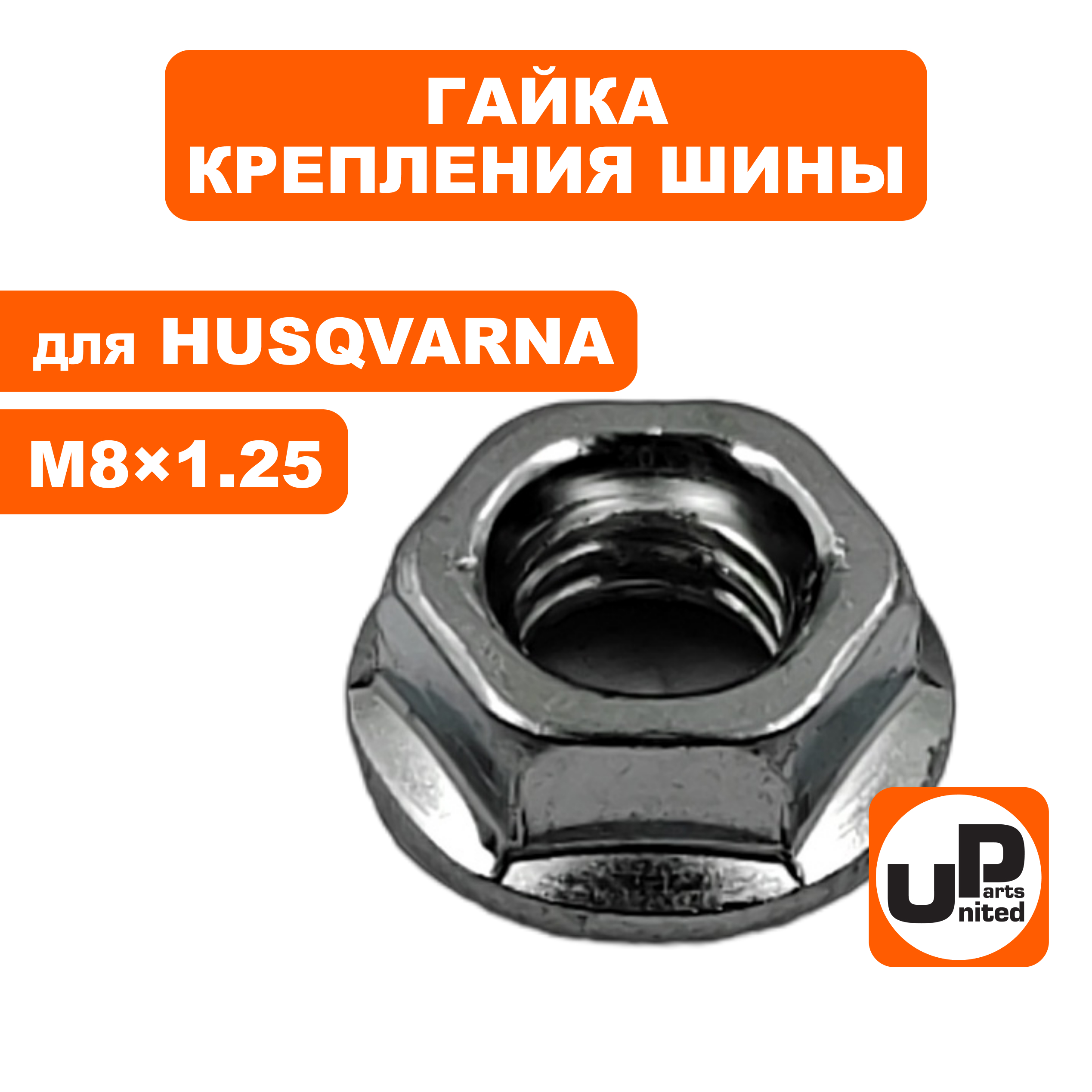 Гайка крепления шины UNITED PARTS M8×1,25 для бензопил HUSQVARNA, Китай (подходит для крепления колес велосипеда)