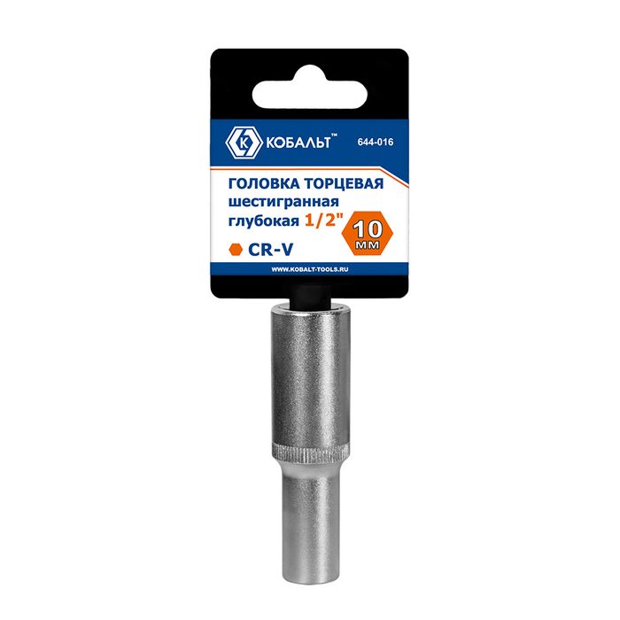 Головка торцевая глубокая КОБАЛЬТ 1/2", 10 мм, CR-V, подвес (644-016) - цена, фото, технические характеристики