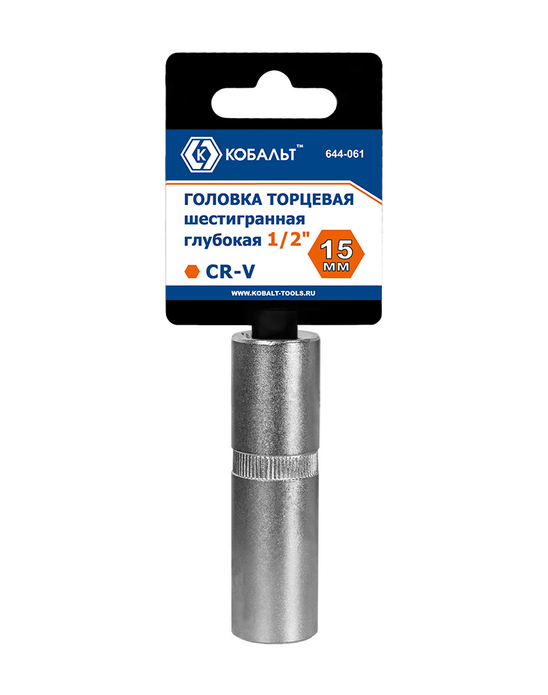 Головка торцевая глубокая КОБАЛЬТ 1/2", 15 мм, CR-V, подвес (644-061) - цена, фото, технические характеристики