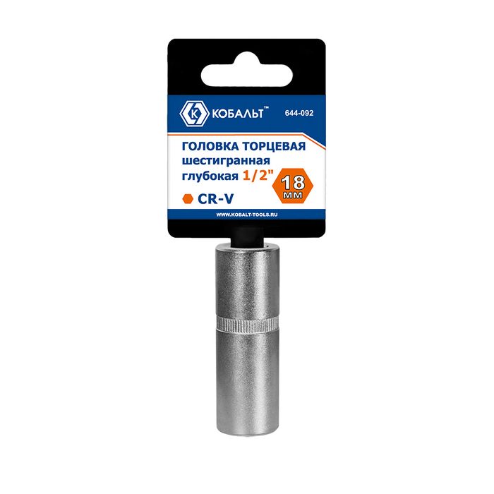 Головка торцевая глубокая КОБАЛЬТ 1/2", 18 мм, CR-V, подвес (644-092) - цена, фото, технические характеристики