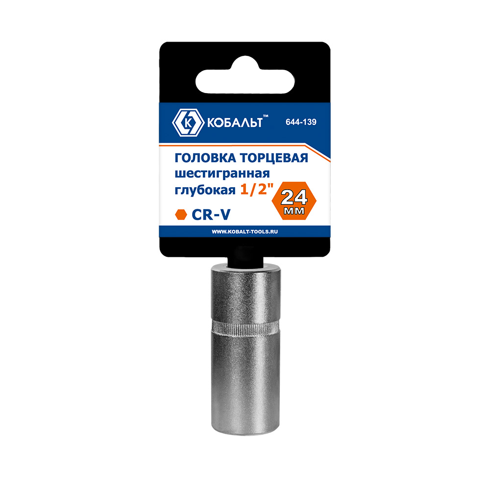 Головка торцевая глубокая КОБАЛЬТ 1/2", 24 мм, CR-V, подвес (644-139) - цена, фото, технические характеристики