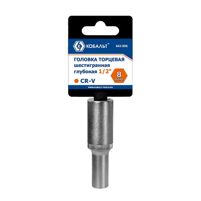 Головка торцевая глубокая КОБАЛЬТ 1/2", 8 мм, CR-V, подвес (643-996) - цена, фото, технические характеристики