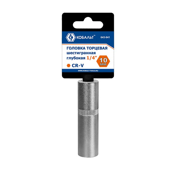 Головка торцевая глубокая КОБАЛЬТ 1/4", 10 мм, CR-V, подвес (643-941) - цена, фото, технические характеристики