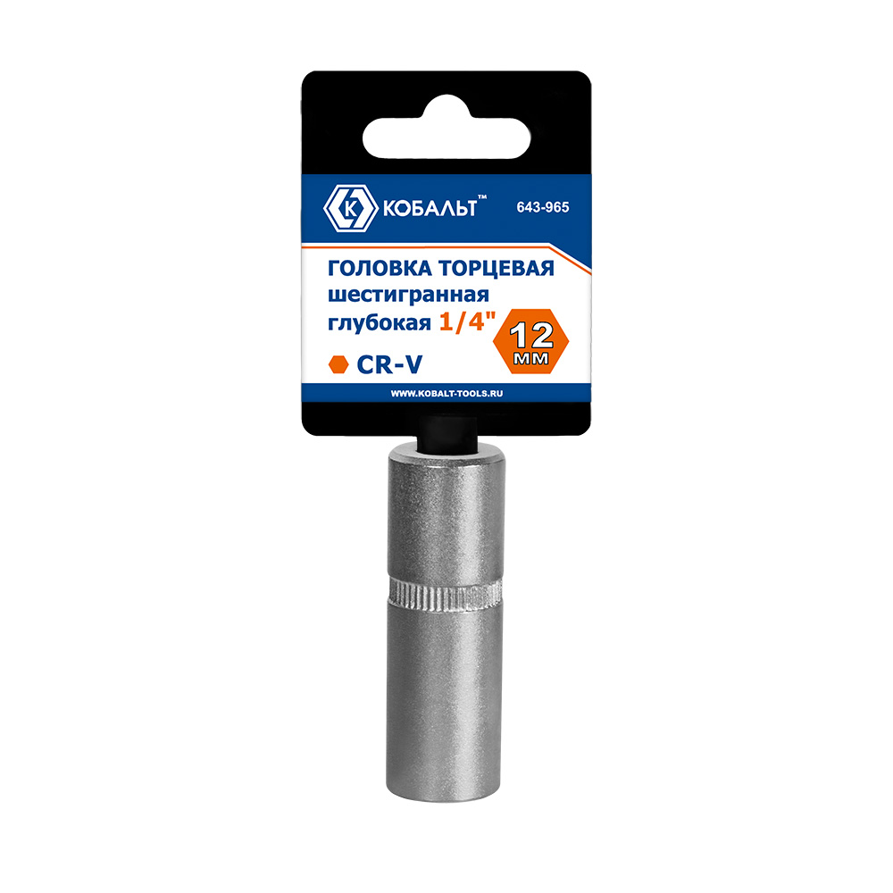 Головка торцевая глубокая КОБАЛЬТ 1/4", 12 мм, CR-V, подвес (643-965) - цена, фото, технические характеристики