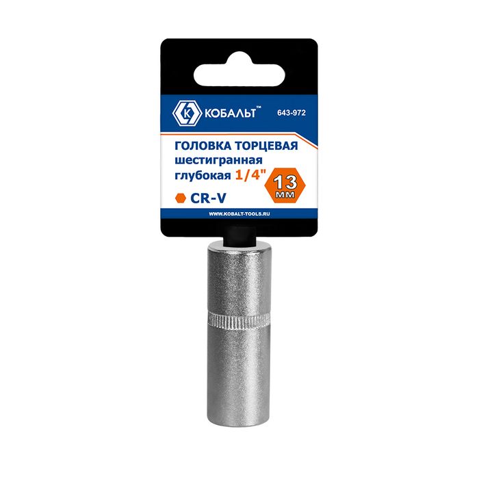 Головка торцевая глубокая КОБАЛЬТ 1/4", 13 мм, CR-V, подвес (643-972) - цена, фото, технические характеристики