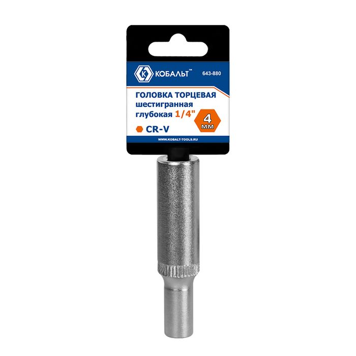 Головка торцевая глубокая КОБАЛЬТ 1/4", 4 мм, CR-V, подвес (643-880) - цена, фото, технические характеристики