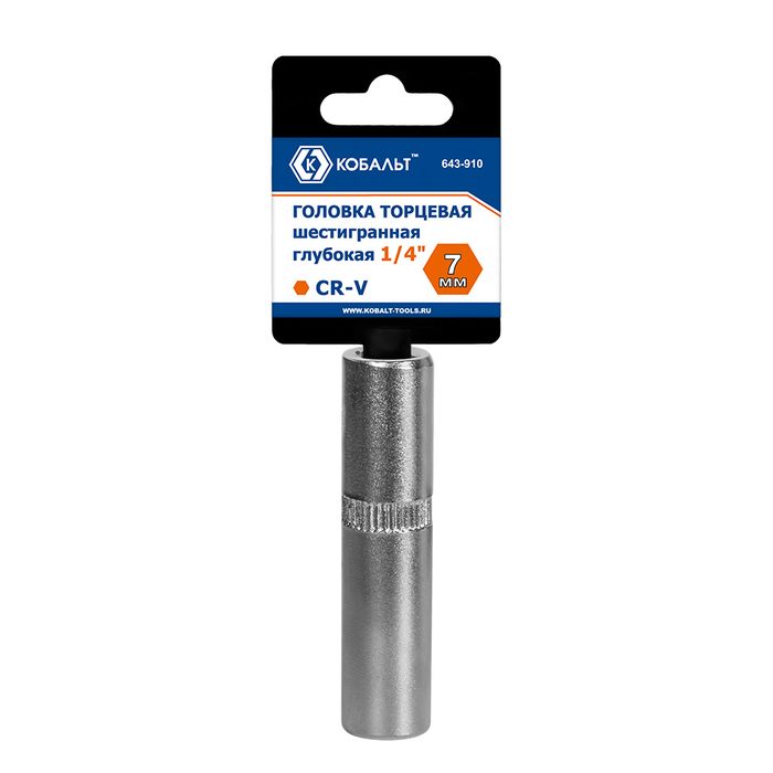 Головка торцевая глубокая КОБАЛЬТ 1/4", 7 мм, CR-V, подвес (643-910) - цена, фото, технические характеристики