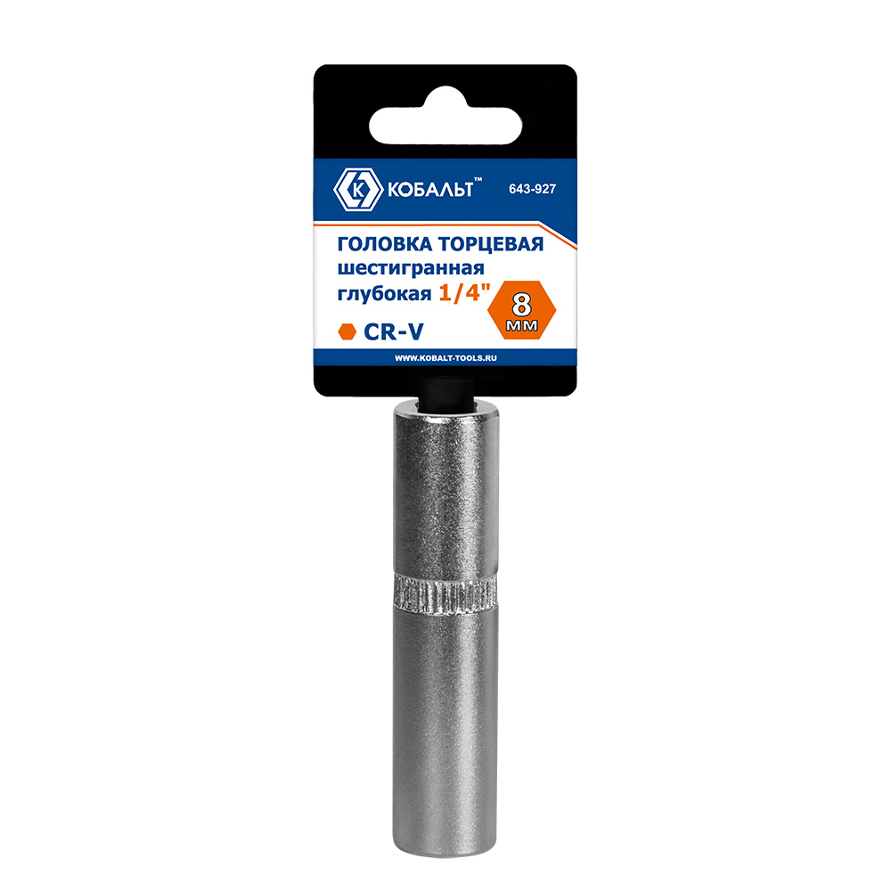 Головка торцевая глубокая КОБАЛЬТ 1/4", 8 мм, CR-V, подвес (643-927) - цена, фото, технические характеристики