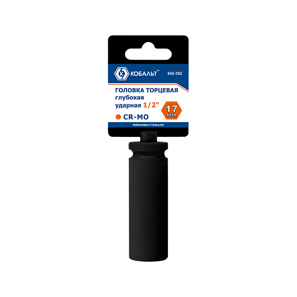 Головка торцевая глубокая ударная КОБАЛЬТ 1/2", 17 мм, CR-MO, подвес (642-302) - цена, фото, технические характеристики