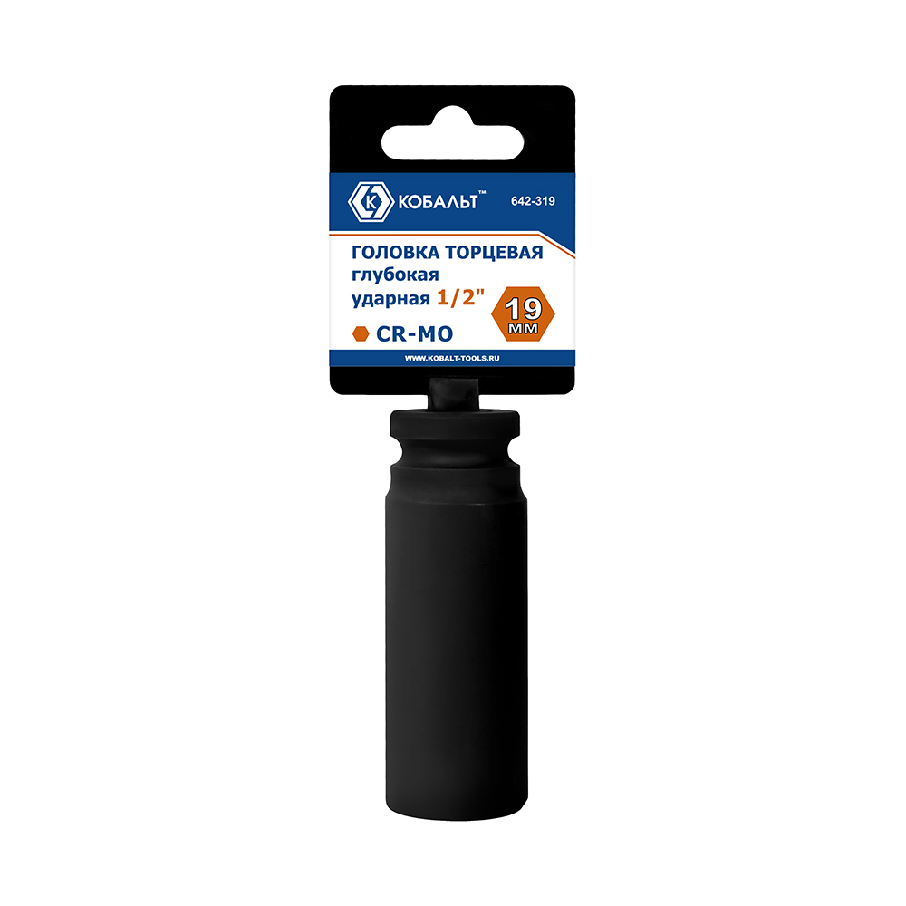 Головка торцевая глубокая ударная КОБАЛЬТ 1/2", 19 мм, CR-MO, подвес (642-319) - цена, фото, технические характеристики