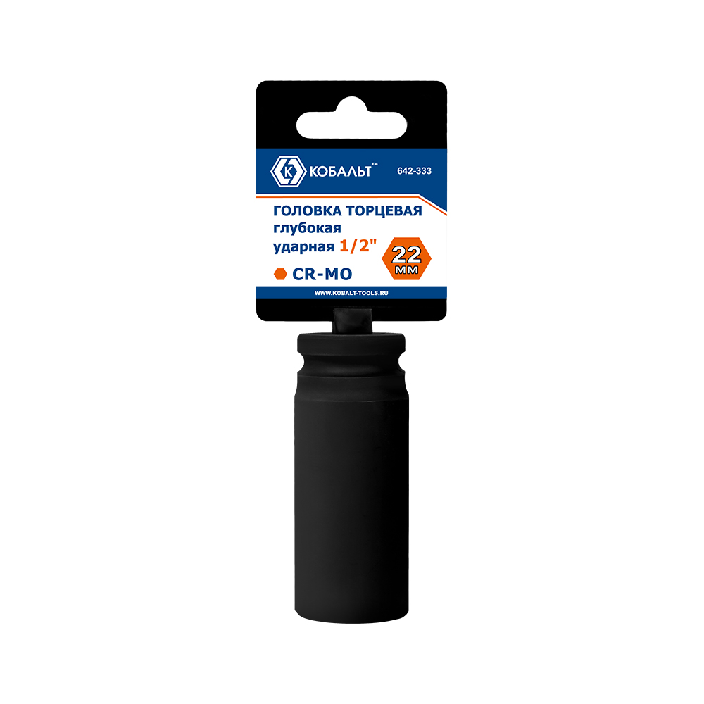 Головка торцевая глубокая ударная КОБАЛЬТ 1/2", 22 мм, CR-MO, подвес (642-333) - цена, фото, технические характеристики