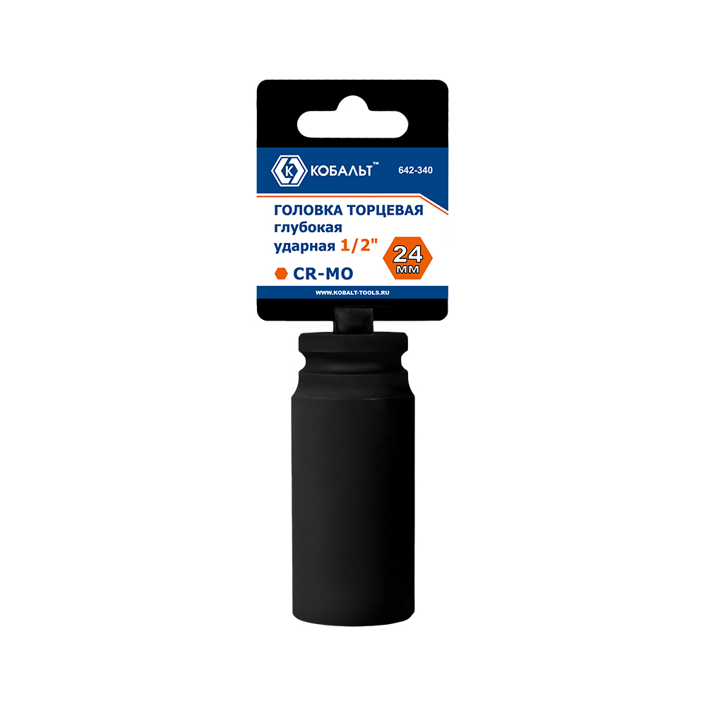 Головка торцевая глубокая ударная КОБАЛЬТ 1/2", 24 мм, CR-MO, подвес (642-340) - цена, фото, технические характеристики
