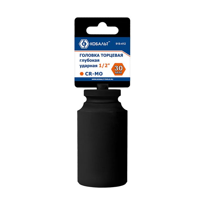 Головка торцевая глубокая ударная КОБАЛЬТ 1/2", 30 мм, CR-MO, подвес (918-412) - цена, фото, технические характеристики
