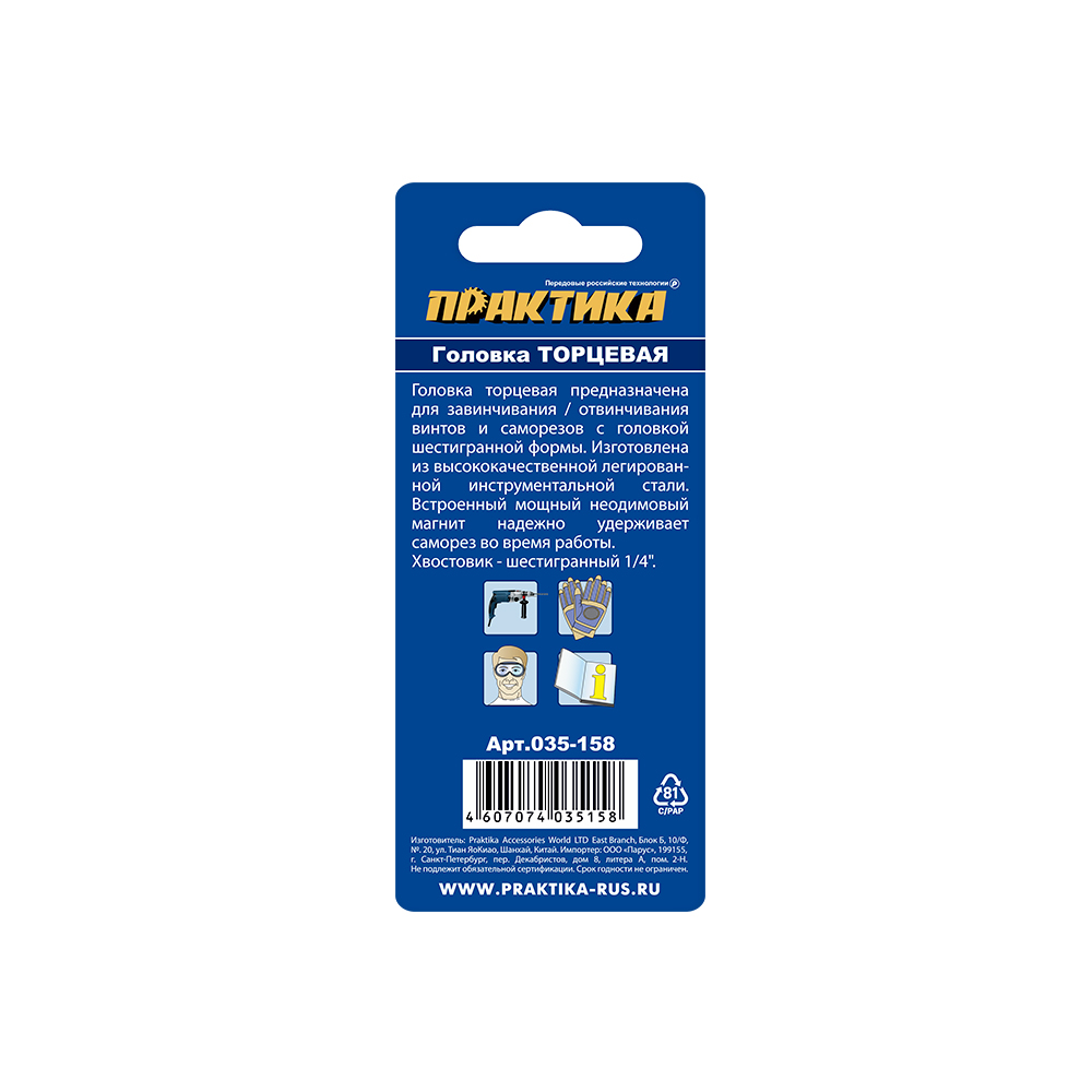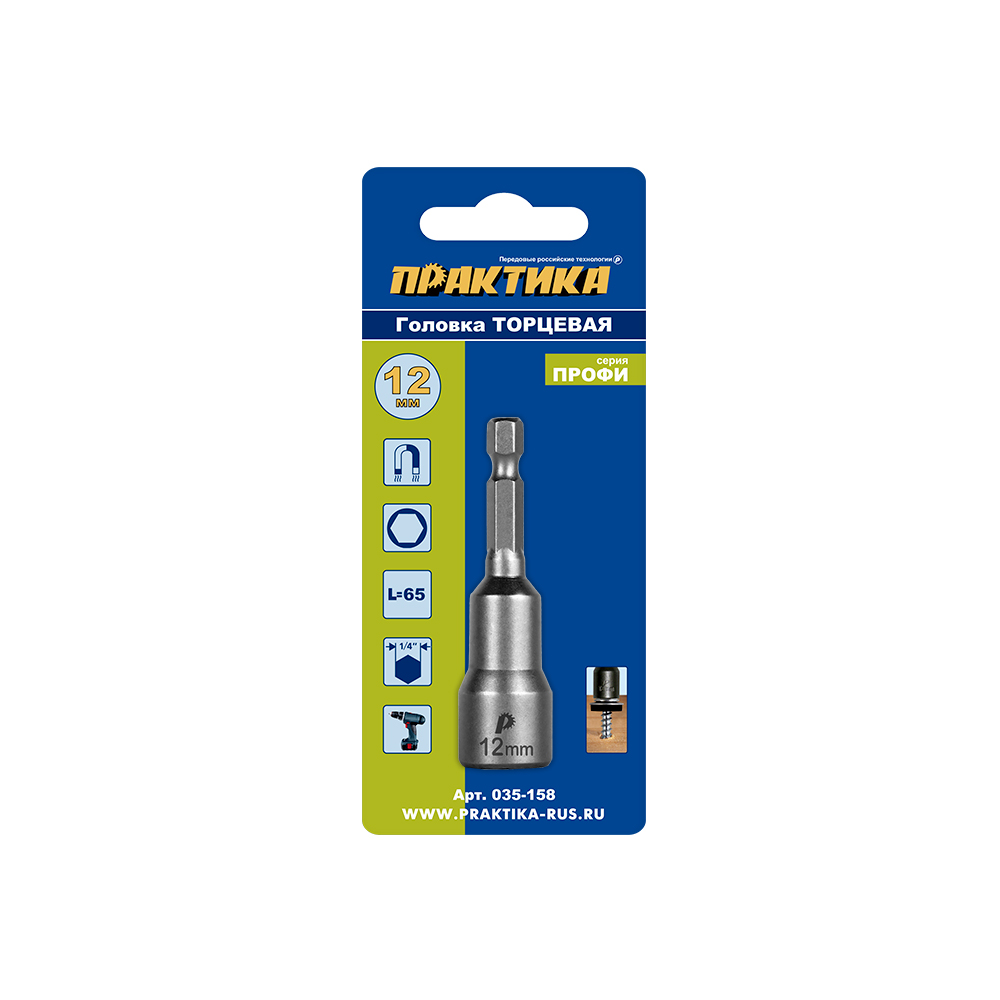 Головка торцевая ПРАКТИКА "Профи" магнитная 12 х 65 мм с хвостовиком HEX 1/4" (1шт), блист (035-158) - цена, фото, технические характеристики