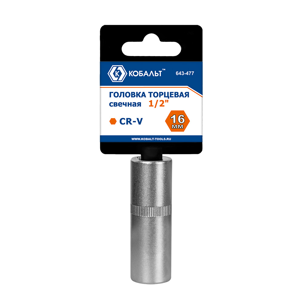 Головка торцевая свечная КОБАЛЬТ 1/2", 16 мм, резиновый держатель свечи, CR-V, подвес (643-477) - цена, фото, технические характеристики